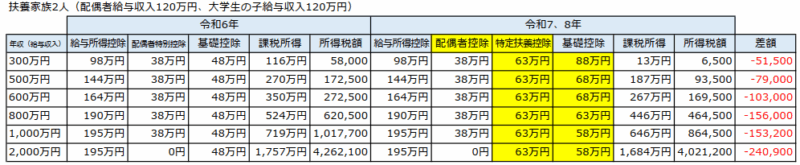 今回の改正では、基礎控除の増額、特定親族特別控除による控除の追加などが挙げられます。